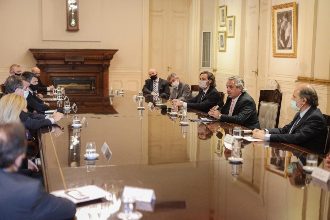 El mandatario estuvo acompañado por el jefe de Gabinete, Santiago Cafiero; los presidentes del Banco Central de la República Argentina (BCRA), Miguel Pesce; y del Banco Nación, Eduardo Hecker.