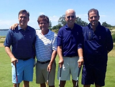 De izquierda a derecha: David Archer y su esposa con Joe Biden y su hijo Hunter Biden en ‎un terreno de golf. ‎