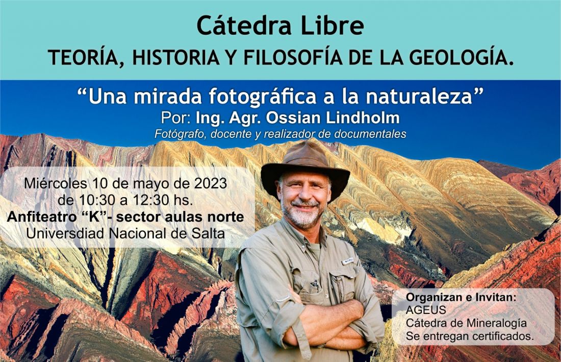 La clase será gratuita y se vera la historia de la geología a través de la fotografía, estará a cargo del ingeniero agrónomo y fotógrafo, Ossian Lindholm, quien invita a abordar temas relacionados a la teoría, historia y filosofía de la geología, acompañado con fotografías de la naturaleza a través de los años
