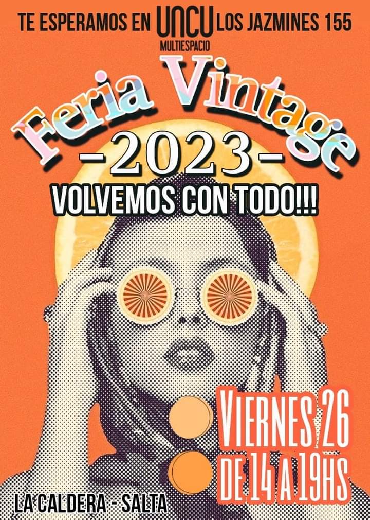 Habrá una feria Vintage este viernes 26 de mayo de 14 a 19 hs en UNCU La Caldera. Para quienes estén interesados en participar de la venta pueden comunicarse al número 387 4639972.