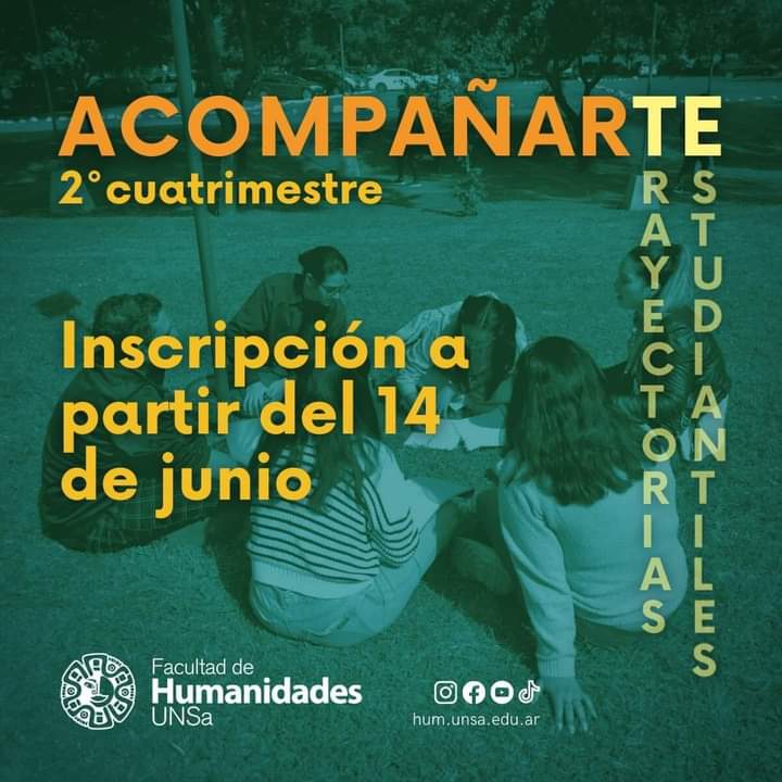 Desde la Facultad de Humanidades se informó que las inscripciones del programa “Acompañar las Trayectorias Estudiantiles: AcompañarTE” para el 2do cuatrimestre ya se encuentra abierta.