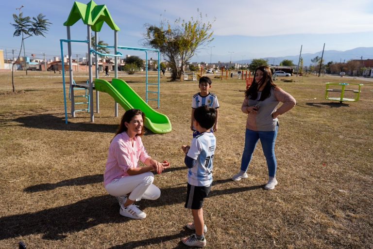 La intendenta, Bettina Romero, recorrió la plaza de barrio El Huaico, que fue renovada en su totalidad por la Municipalidad. En este espacio se colocaron hamacas, calesitas, mangrullo, tobogán y bancos con respaldo. También, se realizó limpieza, poda de arbustos, pintura y arreglo de juegos existentes.