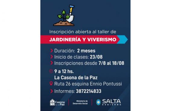 La municipalidad de Salta informa que iniciara la  primera edición del taller de jardinería y viverismo en la Casona de la Paz.