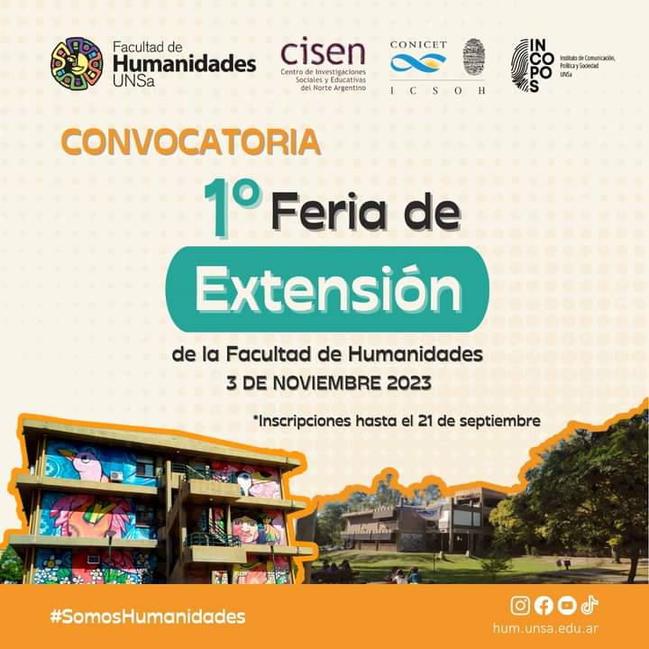 La Facultad de Humanidades de la Universidad Nacional de Salta (UNSa) invita a la comunidad a  participar de la 1° Feria de Extensión, destinada a integrantes de proyectos y actividades de extensión.