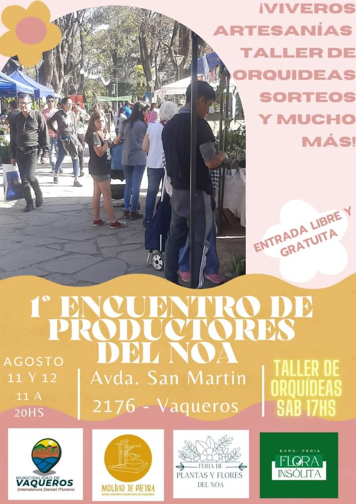 La municipalidad de Vaqueros informa a la comunidad que se realizará el Primer Encuentro de Productores del NOA los días viernes 11 y sábado 12 de agosto a las 20 hs. en el paseo del Molino.