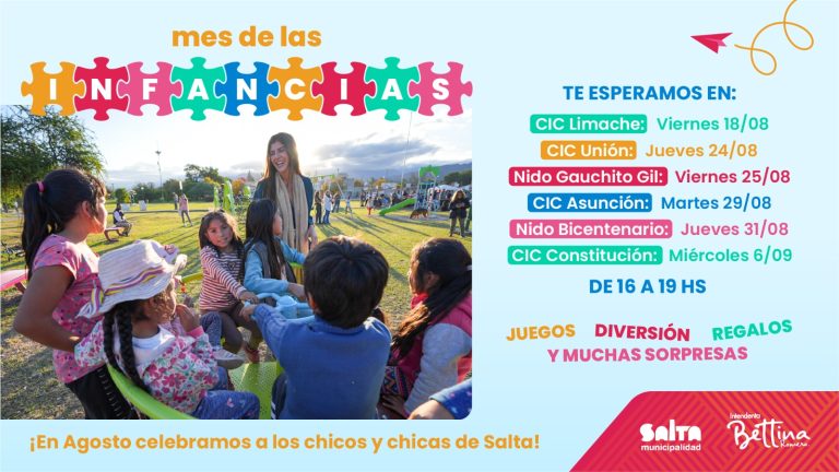 El municipio de Salta realizará diversos festejos en Centros Integradores Comunitarios (CIC) y Núcleos de Inclusión y Desarrollo de Oportunidades (NIDO) por el mes de las infancias.