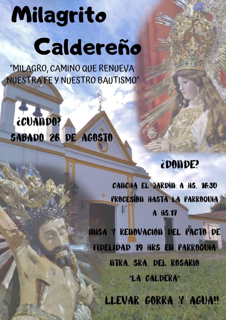 En la municipalidad de La Caldera se celebrará el Milagro Caldereño este 26 de agosto. De esta manera se invita a quienes deseen participar a sumarse a el “Milagro, camino que renueva nuestra fe y nuestro bautismo”.
