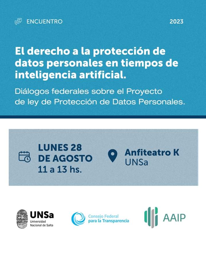 La actividad, es organizada por la Agencia de Acceso a la Información Pública (AAIP) y la Universidad Nacional de Salta que tienen por objetivo primoridial crear un espacio de diálogo y reflexión en relación al proyecto de actualización de la Ley de Protección de Datos Personales, el cual será sometido a debate en el Congreso de la Nación.