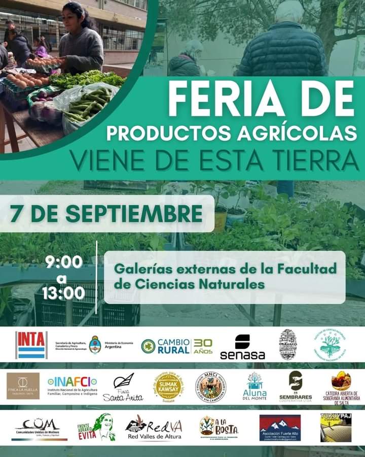 La Facultad de Ciencias Naturales de la Universidad Nacional de Salta invita a la comunidad a participar de la Feria de Productos Agrícolas “Viene de esta tierra”.