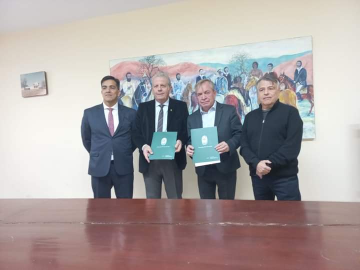 El vicerrector de la UNSa CPN Nicolás Innamorato y el Intendente de Vaqueros Daniel Moreno, acompañados por el Sec. de Extensión Universitaria Lic. Rubén Correa y el sec. de Asuntos Jurídico Abog. Sebastián Aguirre Astigueta, llevaron adelante la firma para la apertura de un nuevo Centro de Extensión Universitario en la municipalidad de Vaqueros. La actividad protocolar se desarrolló en el Foro de Intendentes de la Provincia de Salta.
