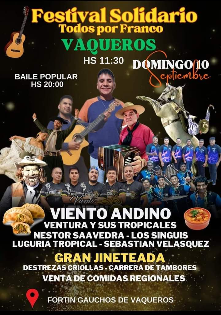 En la municipalidad de Vaqueros se llevará a cabo un Festival Solidario “Todos por Franco” este domingo 10 de septiembre a horas 11:30.