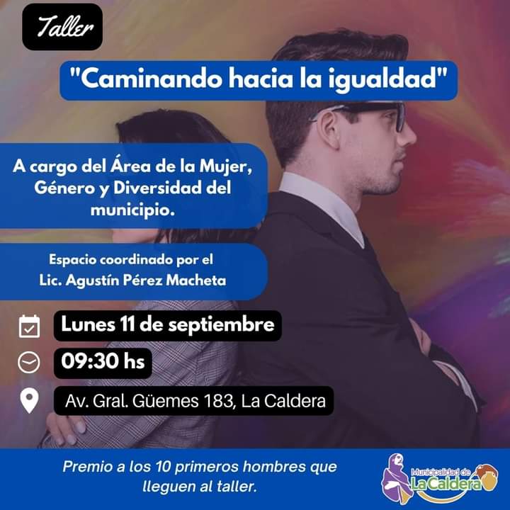 La municipalidad de La Caldera a través del Área de la Mujer, Género y Diversidad del municipio invitan a la comunidad a participar del taller llamado “Caminando hacia la igualdad”.