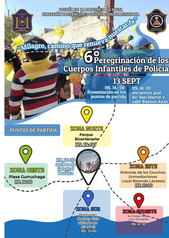 La presentación de los puntos de partida se realizó hoy 13 de septiembre a horas 14 y a horas 18 se realizará el encuentro en Gral. Avenida San Martín y Calle Buenos Aires. El arribo a la Catedral Basilica se espera a las 18:30 hs.