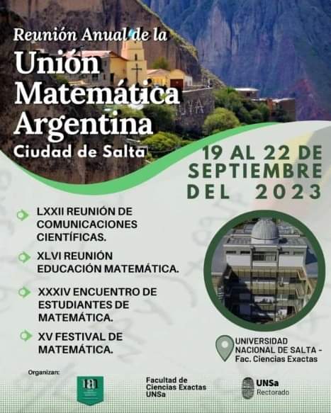 La Unión Matemática Argentina en Salta dará inicio el día de hoy, 19 de septiembre, al viernes 22 de septiembre en la Facultad de Ciencias Exactas de la Universidad Nacional de Salta.