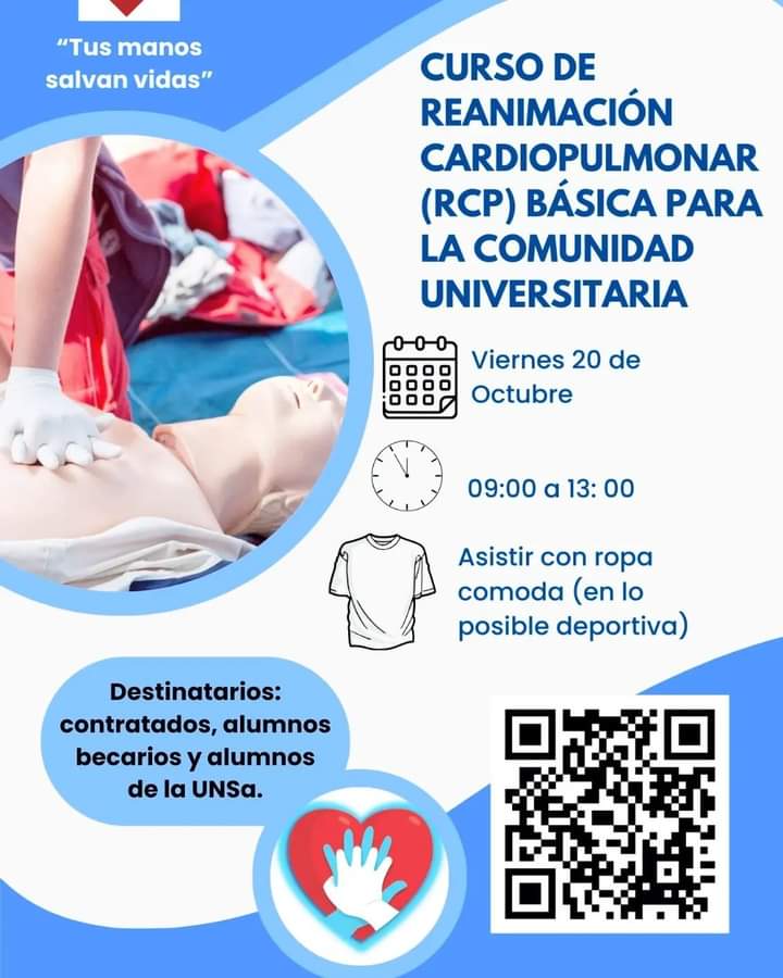 La Dirección de Deportes y la Facultad de Ciencias de la Salud de la Universidad Nacional de Salta invitan a participar del Curso de Reanimación Cardiopulmonar Básica, destinado para Contratados, estudiantes becarios y estudiantes de todas las facultades en general.