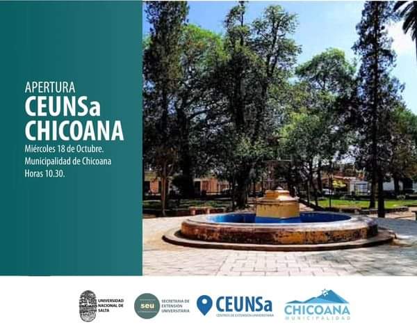La Universidad Nacional de Salta informa que hoy 18 de Octubre se llevará a cabo la apertura del Centro de Extensión Universitaria de Chicoana.