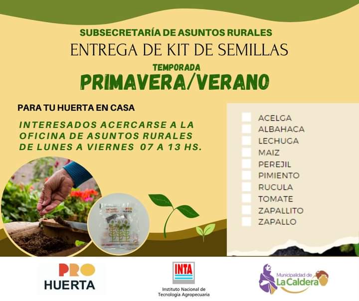 La Subsecretaria de Asuntos Rurales de la municipalidad de la Caldera  recuerda a la comuna que se continua entregando kit de semillas para esta temporada.