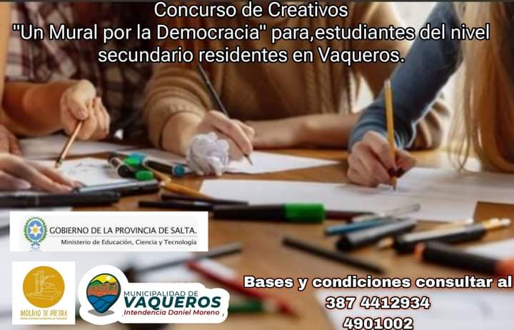 En la municipalidad de Vaqueros, el miércoles 8 de Diciembre, iniciará el concurso de Creativos “Un Mural por la Democracia “para alumnas y alumnos el nivel secundario de Vaqueros.