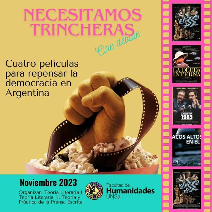 Desde la Facultad de Humanidades de la Universidad Nacional de Salta y las cátedras de Teoría Literaria I, II y Teoría de la Prensa Escrita, invitan a participar de la actividad Cine Debate denominada “Necesitamos Trincheras, cuatro películas para repensar la democracia en Argentina”