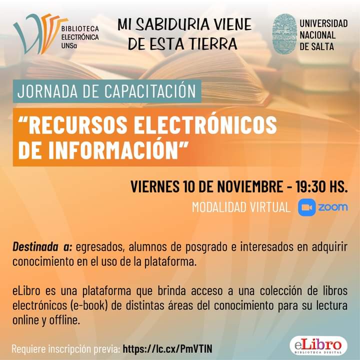 La Biblioteca Electrónica de la Universidad Nacional de Salta invita a la Jornada de Capacitación “Recursos Electrónicos de Información”.