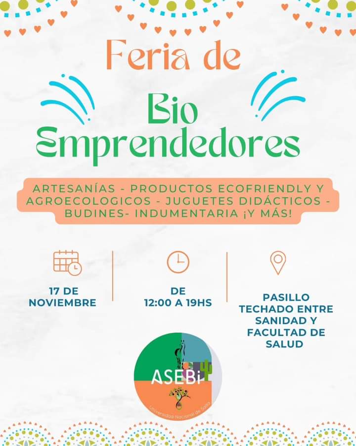 La Asociación Salteña de Estudiantes de Biología de la Facultad de Ciencias Naturales de la Universidad Nacional de Salta junto a la Subsecretaría de Asuntos Estudiantiles organizan la 3° Feria de Bioemprendedores.