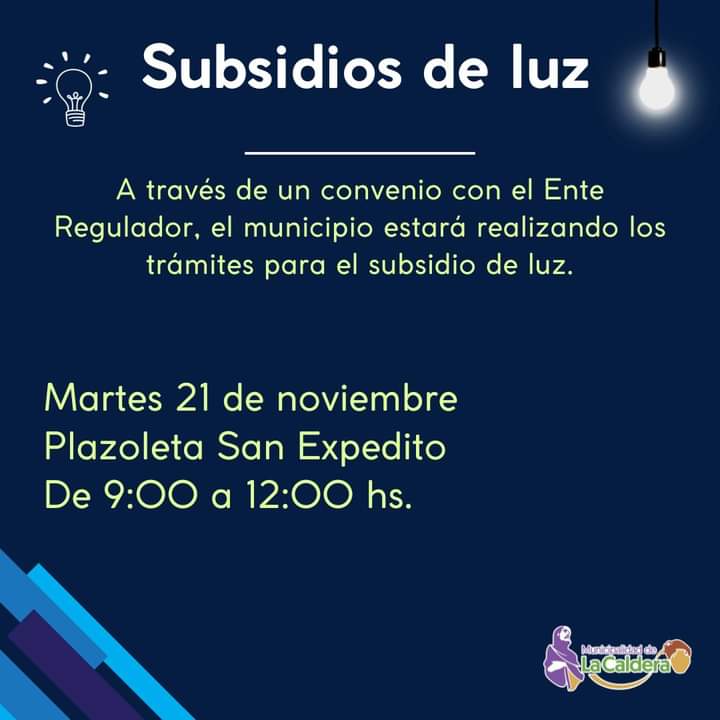 La municipalidad de la Caldera informa a la comunidad que se realizará un operativo para subsidios en tarifas eléctricas.