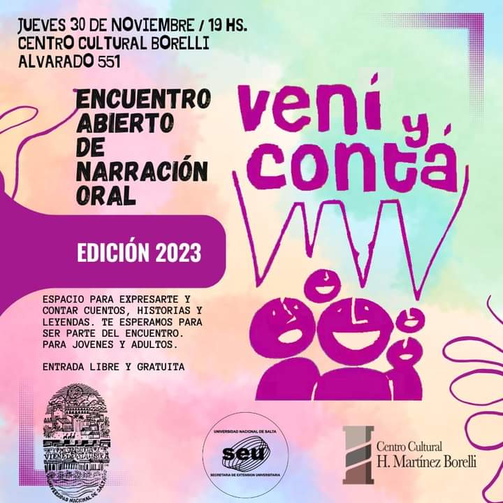 El Centro Cultural Borelli, dependiente de la Secretaría de Extensión de la UNSa, invita al Encuentro de Narración Oral “Vení y Contá”.