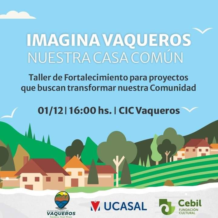 La municipalidad de Vaqueros junto a la Fundación Cebil y la UCASAL, invitan a la comunidad a participar del taller libre y gratuito llamado “Taller de Fortalecimiento para proyectos que buscan transformar nuestra Comunidad”.