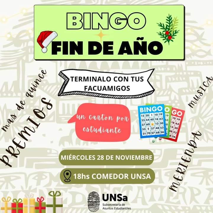 En la Universidad Nacional de Salta se llevará a cabo un bingo de fin de año organizado por la Subsecretaría de Asuntos Estudiantiles.