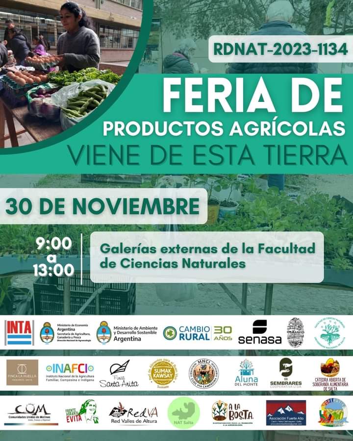 La Facultad de Ciencias Naturales de la Universidad Nacional de Salta invita a la Feria de productos agrícolas hoy jueves 30 de noviembre.