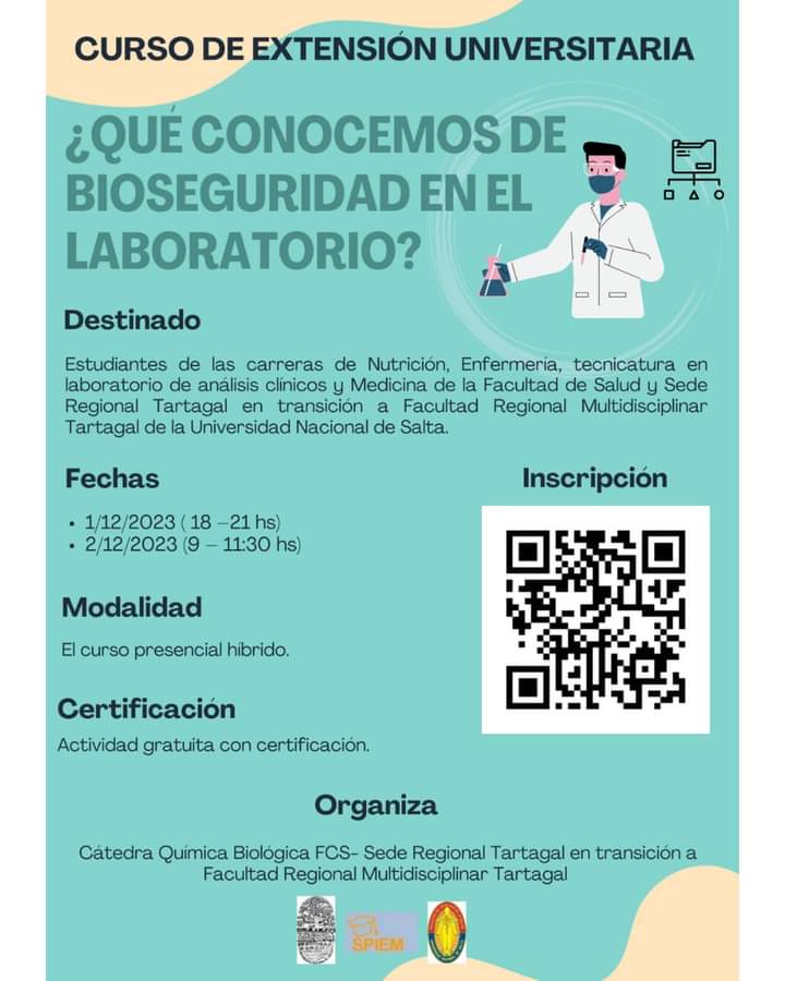 La Facultad de Salud de la Universidad Nacional de Salta informa acerca del curso de Extensión Universitaria “¿Qué conocemos de bioseguridad en el laboratorio?”.