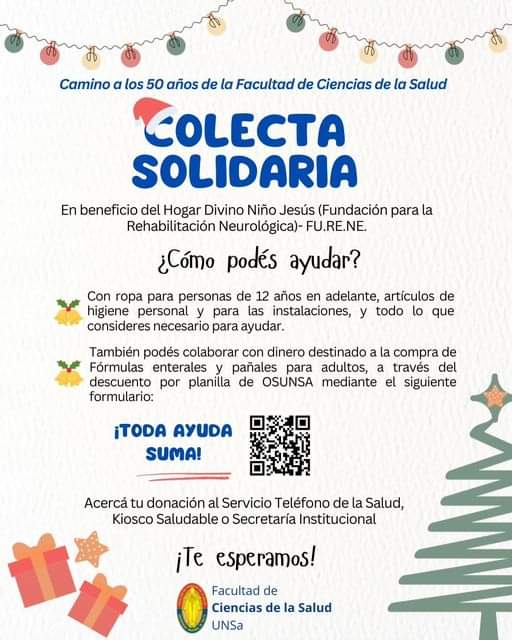 Desde la Facultad de Ciencias de la Salud de la Universidad Nacional de Salta se impulsa una Campaña Solidaria en beneficio al Hogar Divino Niño Jesús que acoge a personas con parálisis cerebral de edades entre 12 y 42 años.