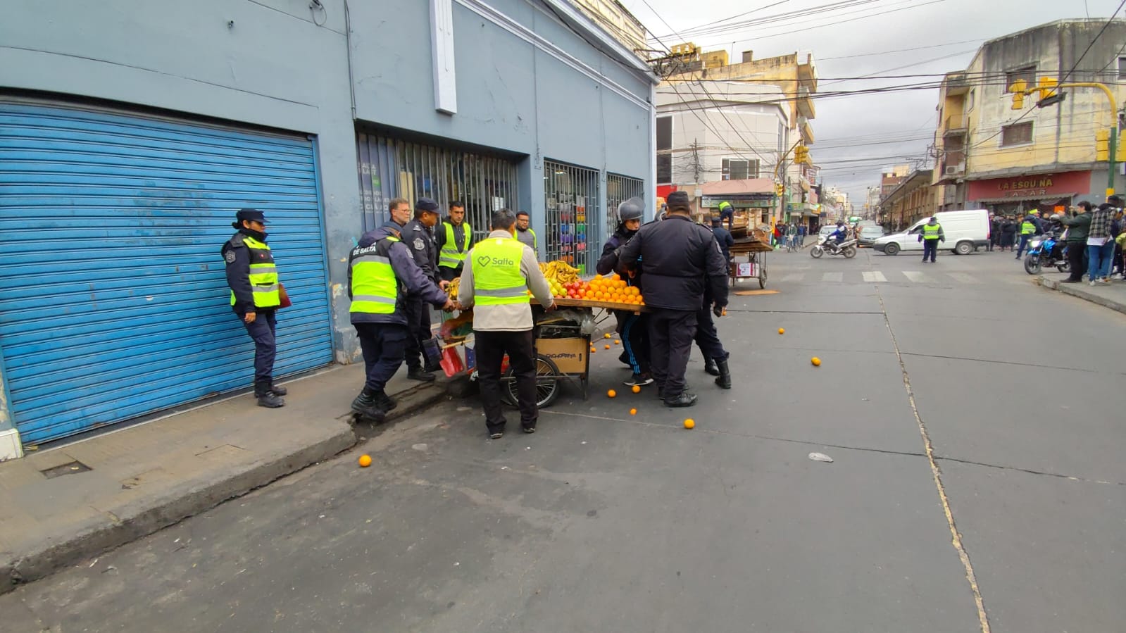 Esta mañana se llevó a cabo un intenso operativo en pleno centro que culminó con el decomiso de, al menos, 3 carros fruteros. Hubo amenazas y agresiones a inspectores y a personal policial. *Durante el operativo se secuestraron armas punzantes*