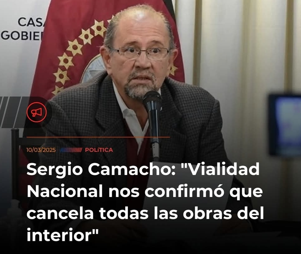 Sergio Camacho: “Vialidad Nacional nos confirmó que cancela todas las obras del interior”.