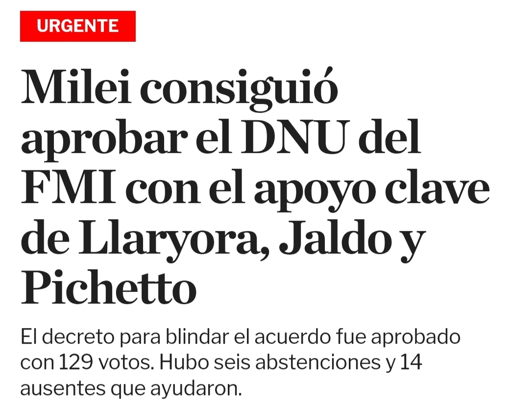 Tras más de seis horas de debate, el DNU recibió 129 votos a favor y 108 votos en contra. Hubo seis abstenciones y 14 ausencias, que son ayudas claves que los diputados intentan hacer pasar desapercibido.