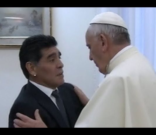Francisco y Maradona. Emotivo abrazo de dos argentinos