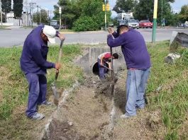 Continúa la limpieza del desagüe pluvial colindante a la Avda. Tavella